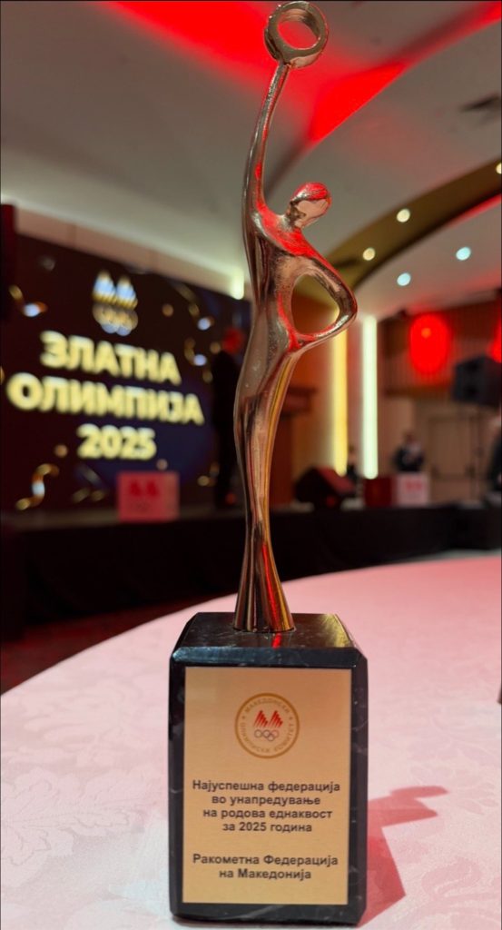 Најуспешна федерација во унапредување на родова еднаквост за 2025 година, признание кое е потврда за нашата континуирана посветеност, еднакви можности и поддршка на развојот на ракометот без разлики.